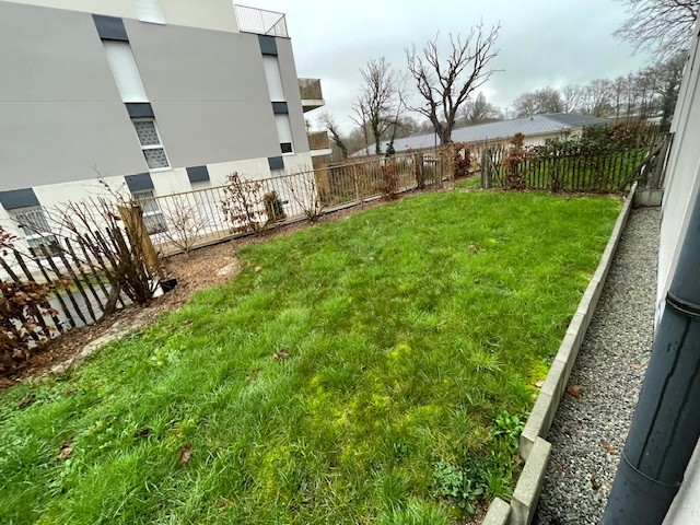 VANNES-Beaupré Lalande : Bel appartement neuf, T3 exposé Sud Ouest et comprenant : Entrée avec placard, salon/séjour sur terrasse et jardinet privatif de 106 m² clos, cuisine aménagée et équipée (hottes, plaques induction, lave vaisselle, four classique, réfrigérateur, congélateur, micro-ondes), deux chambres, une salle d’eau aménagée, un grand wc.