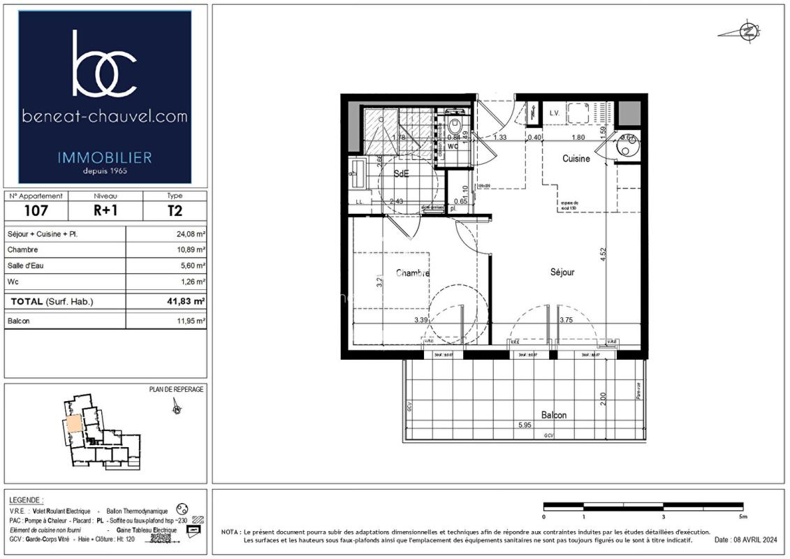 individuelles, un appartement de type 2 composé d’un séjour-cuisine ouvrant sur un balcon, W.C. séparé, salle d’eau et chambre. Parking couvert inclus.