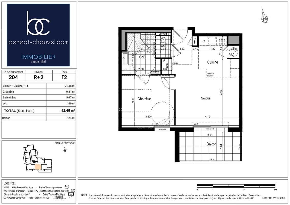 individuelles, un appartement de type 2 composé d’un séjour-cuisine ouvrant sur un balcon, W.C. séparé, salle d’eau et chambre. Parking couvert inclus.