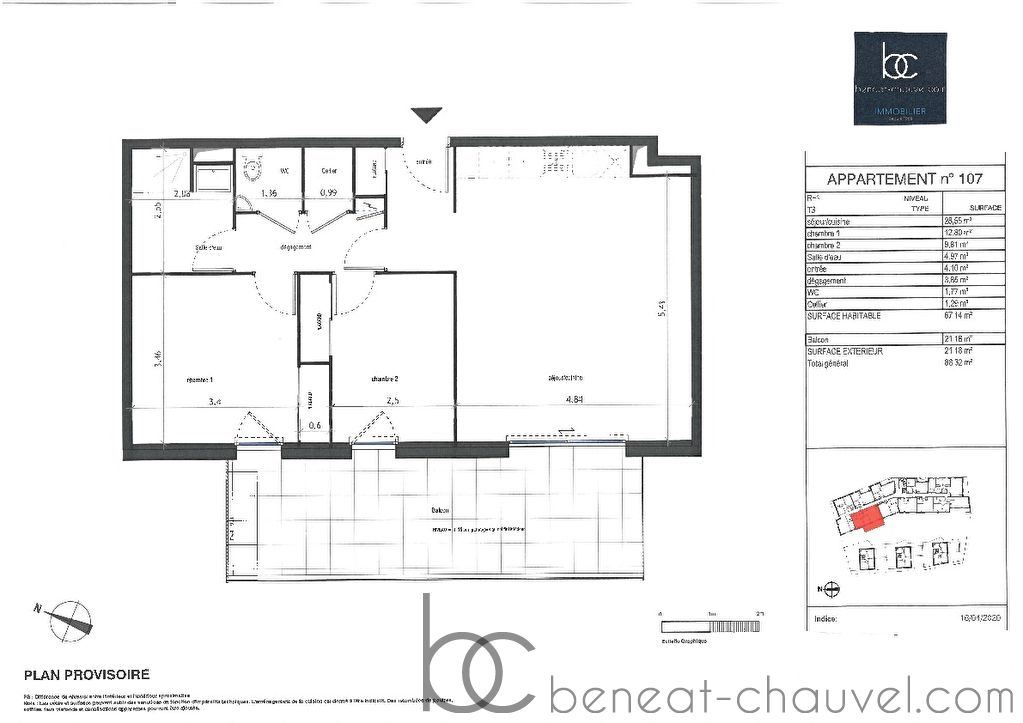 Sarzeau centre, dans un ensemble immobilier de Standing offrant 34 logements sur 4 niveaux, un appartement de type 3 pièces de 67 m² environ offrant un beau séjour cuisine, deux chambres et une salle d’eau avec toilette, un cellier. Situé au premier étage et ouvrant sur l’extérieur par une terrasse couverte. 2 Parkings en sous-sol. Frais de notaires réduit. Livraison prévue au 4ème trimestre 2022.