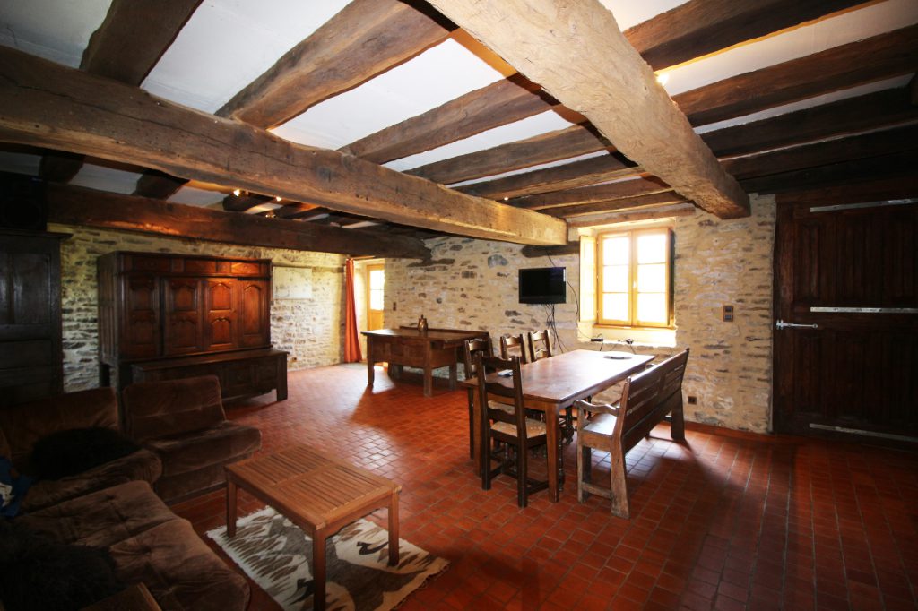 – Du bâtiment principal offrant : Au rez-de-chaussée : Cuisine équipée et aménagée, cellier avec chaufferie ,salle a manger avec cheminée, wc/lavabo, séjour/Salon de 40m2 avec cheminée.