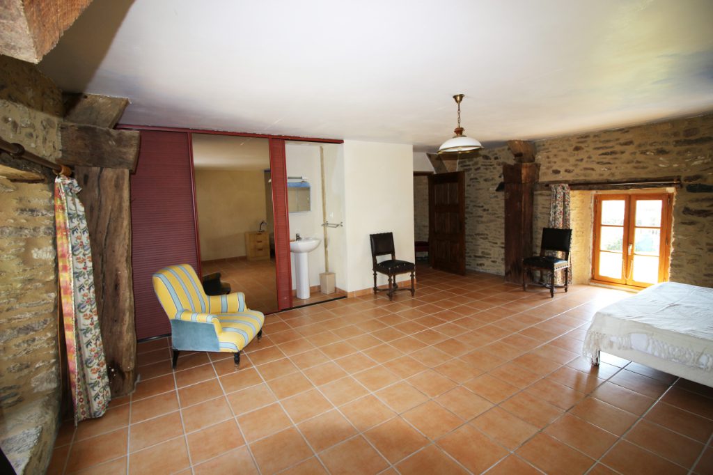 A l’étage : Dégagement, 1 grande chambre avec lavabo (possibilité d’en faire une troisième), 1 chambre avec WC et salle de bains privative, salle d’eau ,WC.
