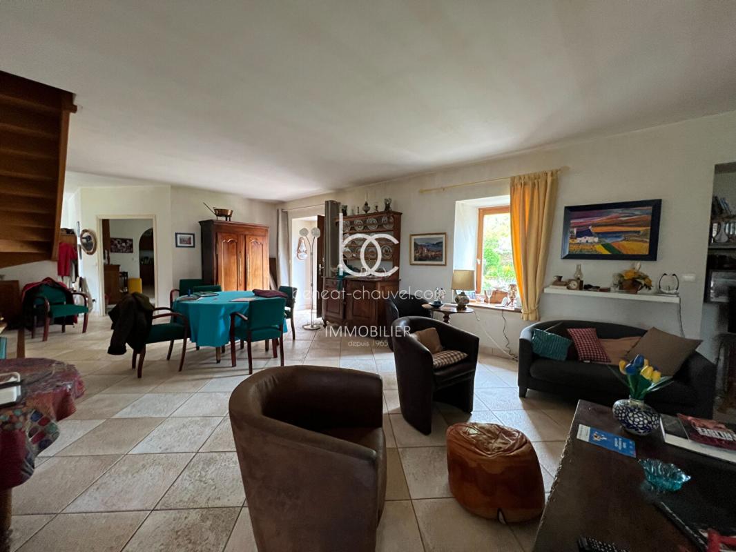 A l’étage, une seconde pièce de vie avec kitchenette distribue quatre chambres, deux salles de bains et un WC. Cet agencement permet une grande flexibilité. Bien que la maison soit pleine de charme, un rafraîchissement et une modernisation sont à envisager selon vos envies, offrant l’opportunité de personnaliser entièrement ce lieu d’exception.