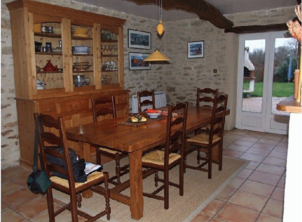 Entrée de la presqu’ile, dans hameau du bord du Golfe au calme belle longère rénovée comprenant salle a manger cuisine équipée a l’américaine, belle pièce de vie de 35m2 avec cheminée ancienne, 1 chambre ,WC, sdb, cellier avec douche de retour de plage a l’étage mezzanine avec possibilité chambre supplémentaire. 1 ch avec salle de bains 1 ch avec point d’eau, 2 WC. Garage. Terrain de 1400 m² environ .Beaucoup de charme.