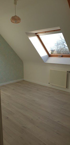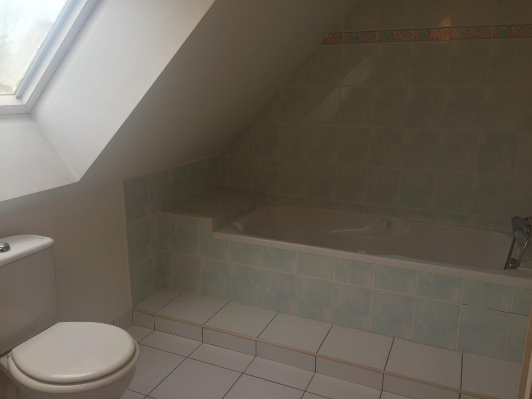 A l’étage : palier, trois chambres dont une avec grenier de rangement, salle de bain avec wc.