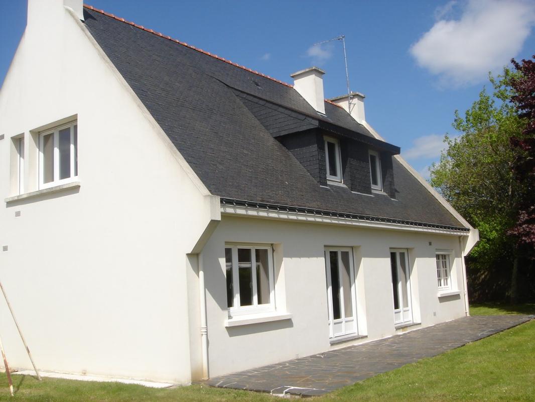 PLOEREN – Proche de toutes les commodités : bourg, bus, écoles…, belle maison aux volumes généreux comprenant : Entrée avec placard, séjour salon, cuisine aménagée, une chambre avec placards, salle de bains avec placard, wc avec lave mains. Etage : Mezzanine avec placards, quatre chambres sur parquet