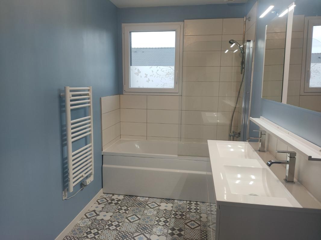 VANNES – Maison de type 6, dans un lotissement comprenant : Rez de chaussée : Entrée avec double placard, wc avec lave mains, cuisine aménagée et équipée (hottes, plaques 2 gaz et 2 induction, four pyrolise), salon séjour, suite parentale avec double placard et sa salle de bains privative disposant d’une baignoire balnéo et d’une douche à l’italienne.
