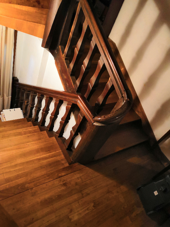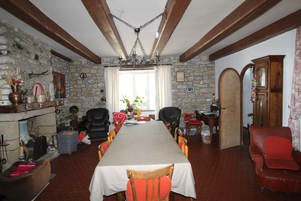 Entrée, séjour salon avec cheminée, cuisine, salle de bains et WC. palier, 4 chambres, placard et grenier aménageable.
