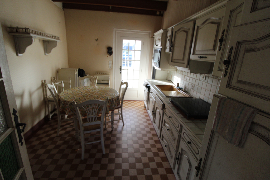 A proximité de PORT NAVALO, maison d’habitation à rénover totalement comprenant au rez de chaussée entrée, séjour, salon, cuisine indépendante aménagée et équipée, cellier, dégagement, chambre, salle de bains et W.C. indépendant.