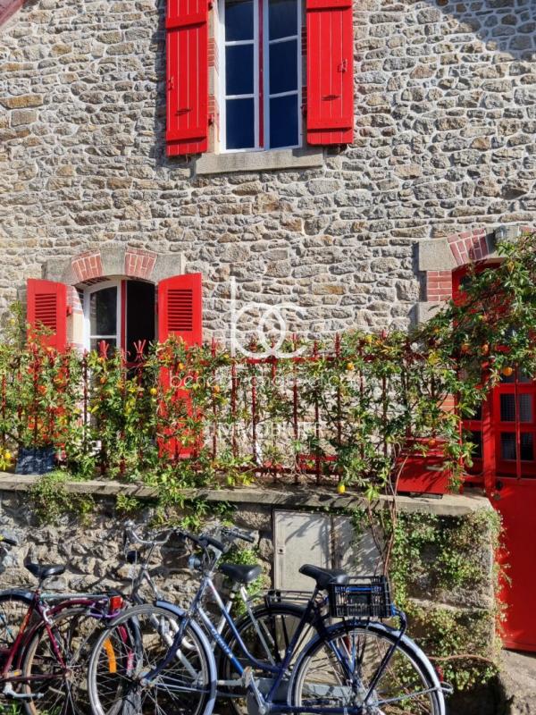 Jolie maison ancienne en pierre au coeur du bourg de l’Ile-aux-Moines. Située à 10 minutes à pied de l’embarcadère et 5min à pied de la ravissante plage de Port Miquel, cette maison aux volets rouges possède un charme fou. Très joliment rénovée, elle présente une grande pièce à vivre (salon-salle à manger) avec belle hauteur sous plafond et cheminée. Le parquet au sol apporte une atmosphère confortable et chaleureuse à la pièce. Cette dernière s’ouvre sur une cuisine séparée par une verrière de type industriel. Avec ses ouvertures traversantes et son vélux dans la cuisine, la maison est baignée de lumière.