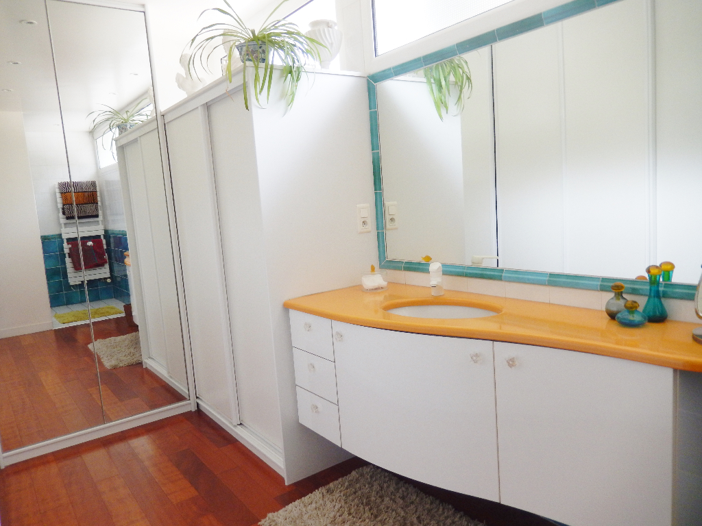 Au rez-de-chaussée : vaste séjour-salon, cuisine équipée et aménagée, superbe suite parentale de 2001 (chambre sur beau parquet massif, dressing, grande sde). Une pièce de 30 m² environ en duplex avec accès indépendant. Un garage.