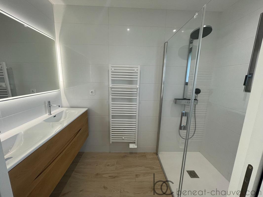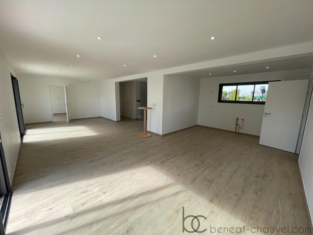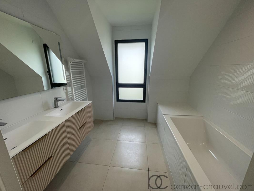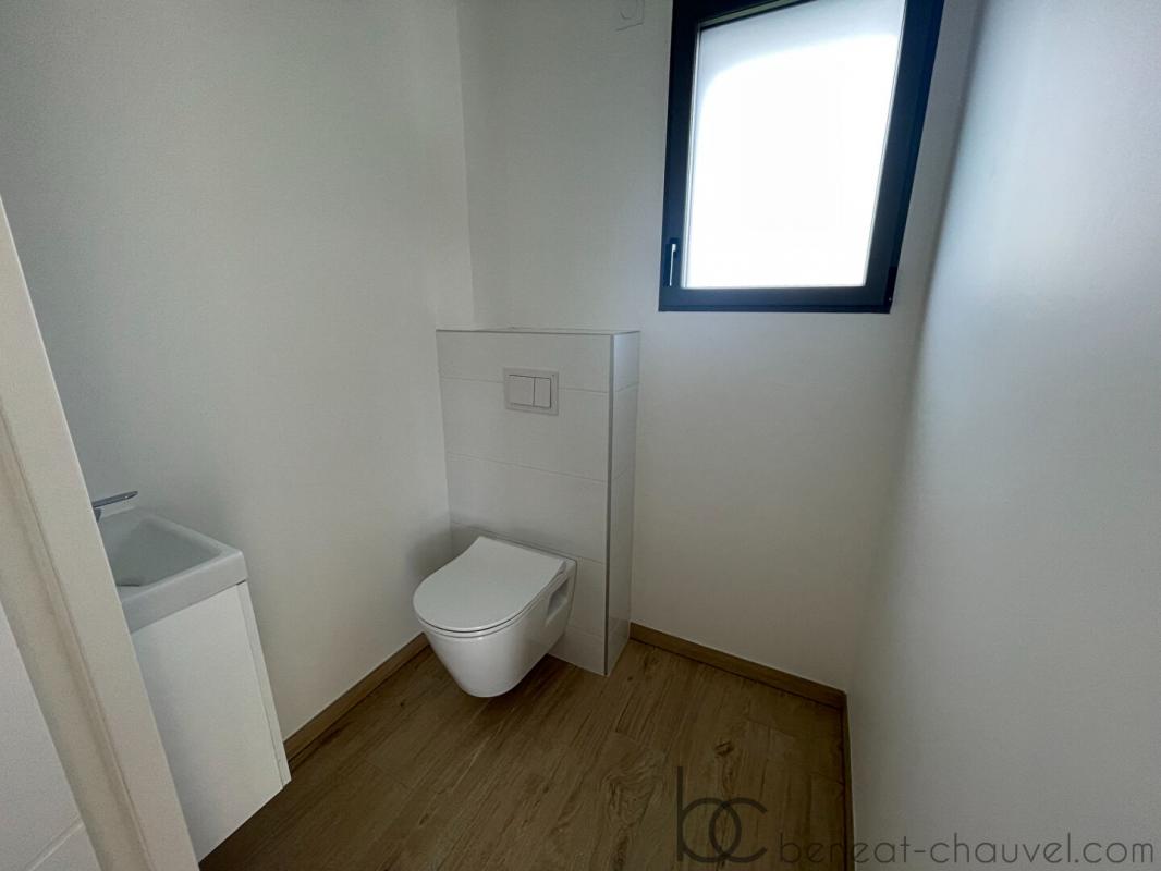 Vous y découvrirez, au rez-de-chaussée, une entrée avec placard aménagé ainsi qu’un escalier contemporain en acier bois, un salon-salle à manger baigné de lumière grâce à deux grandes baies vitrées, une cuisine indépendante aménagée et équipée avec un accès direct au garage, un wc indépendant. Une suite parentale de 26 m² avec dressing, salle d’eau et wc, complète ce niveau.