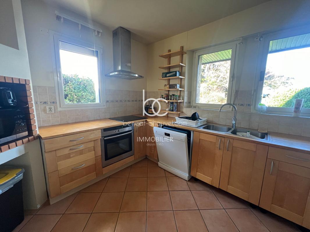 Découvrez cette maison atypique comprenant deux espaces de vie indépendants et communicants : une première partie se compose d’un salon séjour donnant sur deux terrasses, une cuisine aménagée/équipée, un cellier, une suite parentale avec salle d’eau attenante, WC. A l’étage : une grande mezzanine avec un espace nuit, une loggia, une chambre avec salle d’eau-WC. La seconde partie comprend : une pièce de vie avec cuisine donnant sur une terrasse privative et à l’étage, 2 chambres, une salle d’eau et WC. Un double garage complète ce bien. Le tout est édifié sur une parcelle de plus de 1500 m² offrant de beaux espaces pour profiter de l’extérieur.