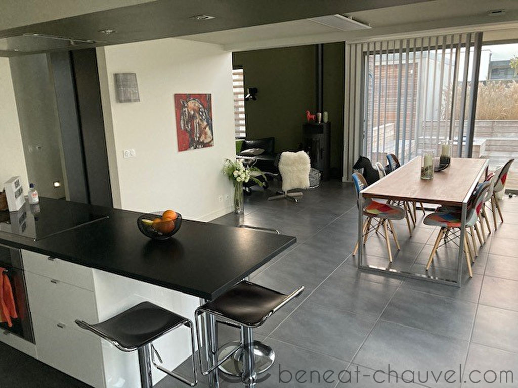 Vous serez séduits par ses prestations et ses beaux volumes. Dès son entrée, vous découvrirez une entrée avec placard, une belle pièce de vie avec poêle à bois et belles hauteurs donnant sur sa terrasse bois bien exposée, une cuisine aménagée équipée, une buanderie, une chambre avec placard et salle d’eau privative. Au 1er niveau : un dégagement avec espace bureau aménagé, une mezzanine, une suite parentale avec dressing et salle d’eau privatifs, un wc. Au 2e niveau : un dégagement avec placard, deux chambres avec placard, une salle d’eau, un wc.