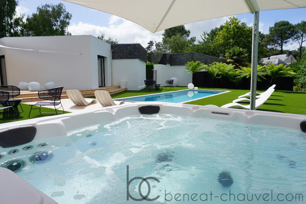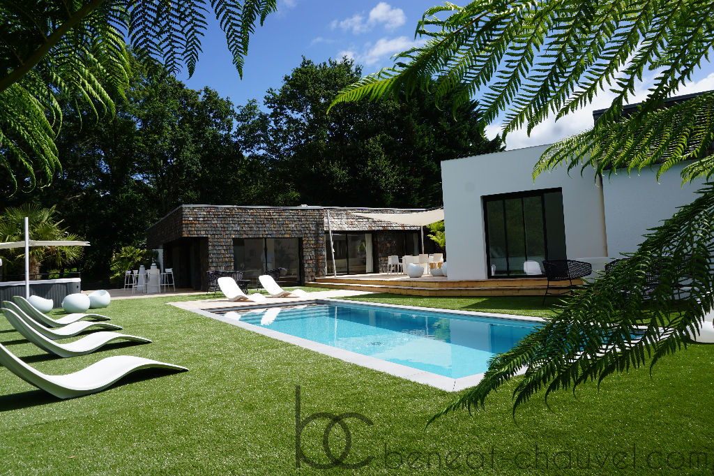 On ne peut rester insensible en franchissant l’entrée de cette propriété aux prestations haut- de-gamme. Cette villa contemporaine située sur un parc de 7600 m² vous offre un volume remarquable, de plain-pied se composant d’un vaste séjour-salon ouvert sur une magnifique terrasse avec piscine et spa, une cuisine équipée, 4 chambres dont une suite parentale avec salle de bains, douche, wc, dressing. une salle d’eau avec wc, patio, wc. Grand Garage. Cave en sous-sol. Etang, abris de jardin. Domotique complète (luminaires extérieurs intérieurs, centralisation volets, sonorisation…)
