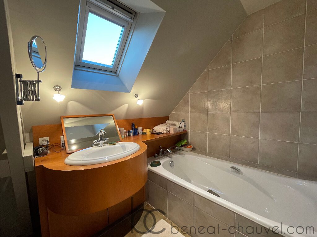 3è maison comprenant : RDC : hall, séjour-salon cheminée, cuisine équipée, salle d’eau, wc. A l’étage : mezzanine, deux chambres.