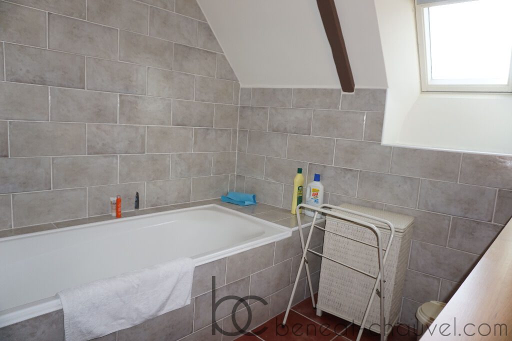 2è maison comprenant : RDC : hall, séjour-salon avec cheminée, cuisine équipée, cellier, wc. A l’étage : trois chambres, salle de bains, wc.