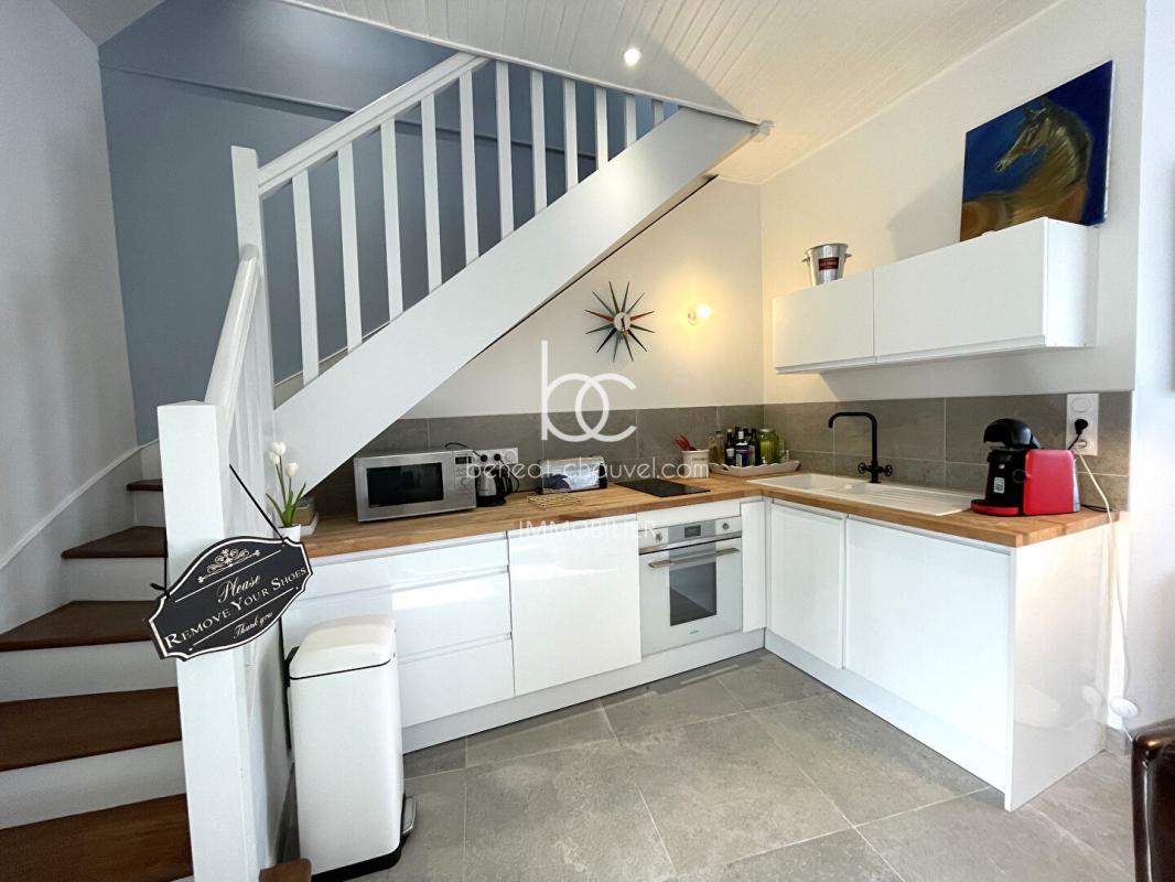 Au rez-de-chaussée : une belle pièce de vie-cuisine équipée lumineuse et conviviale. Une salle d’eau moderne avec WC.