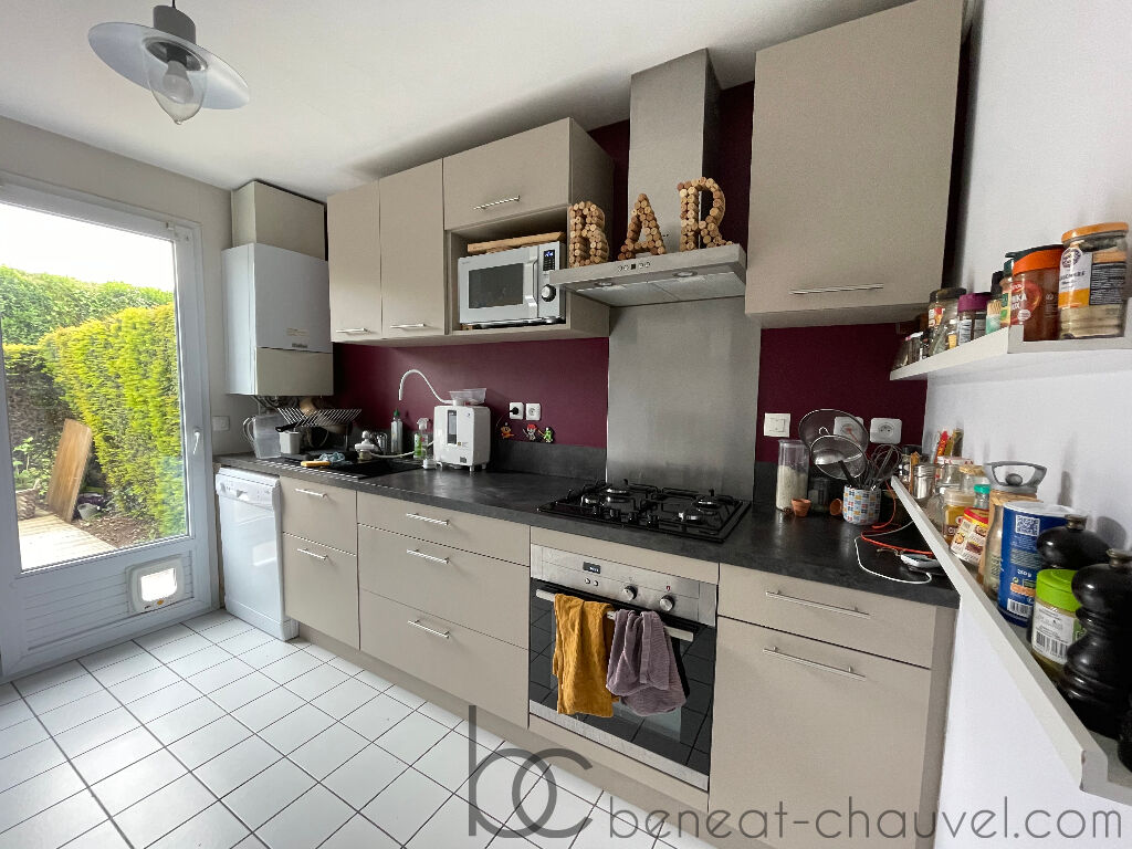 Au rez-de-chaussée : hall, séjour-salon donnant sur une terrasse, cuisine équipée, wc, garage. A l’étage : trois belles chambres, grande salle d’eau, wc. Jardinet.