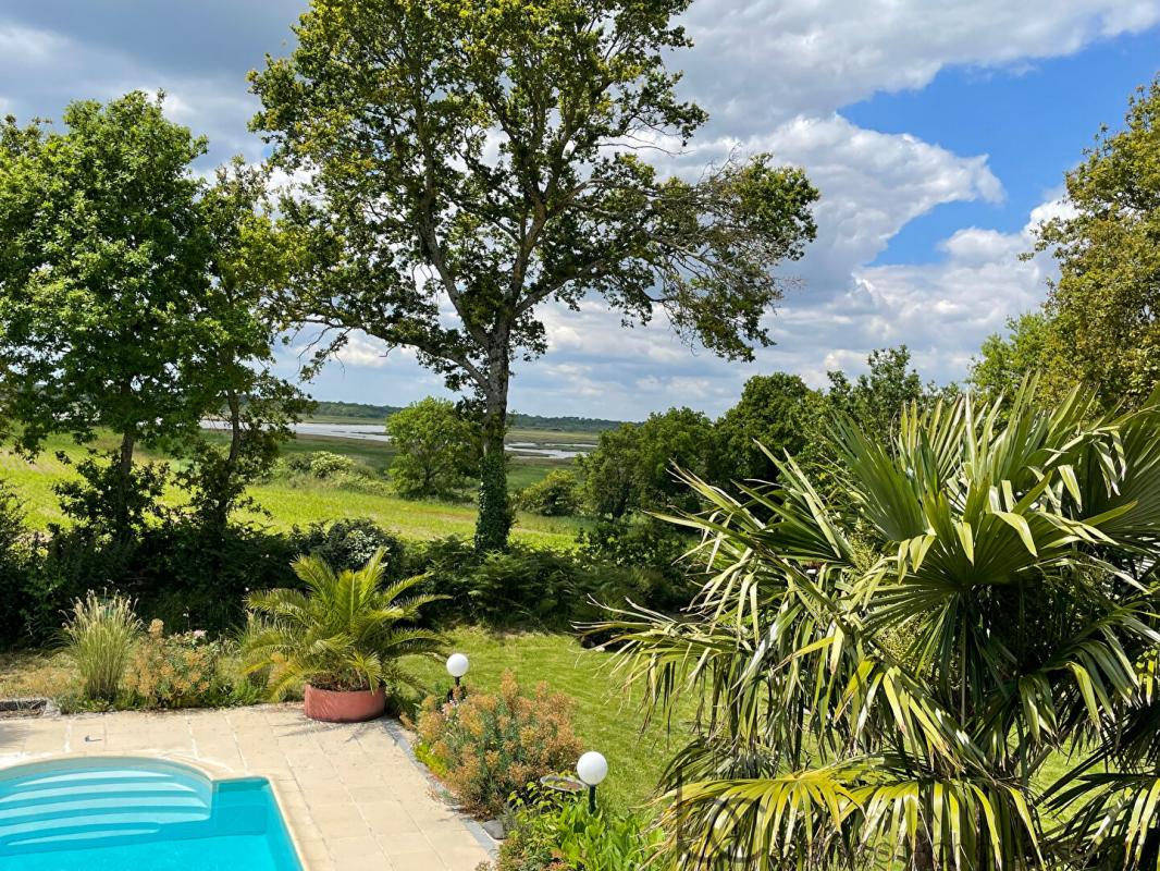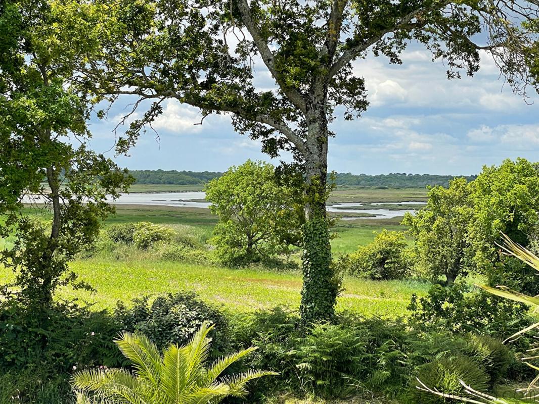 Parc de 3200 m² prolongé par un bras du Golfe, offrant une vue dégagée, dans bel environnement boisé.