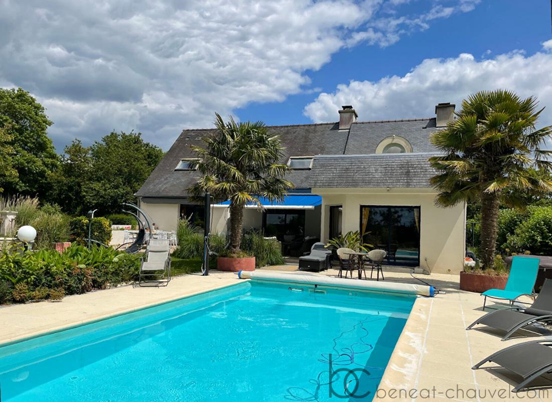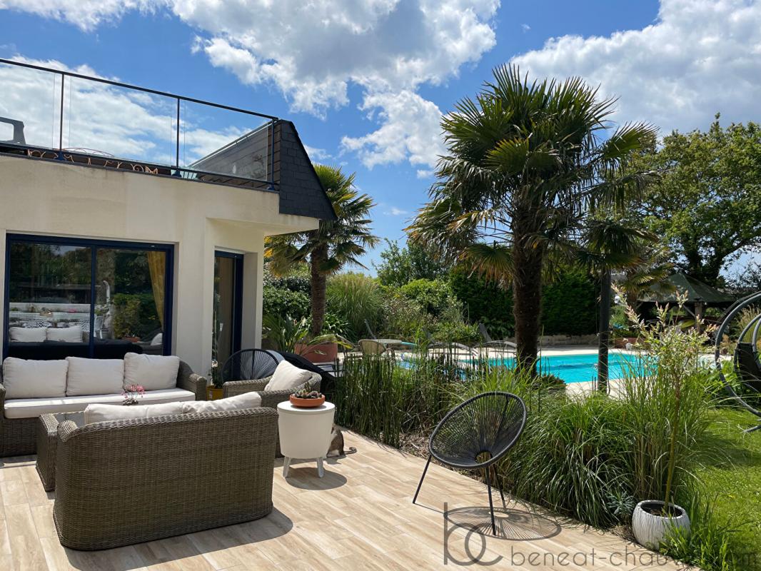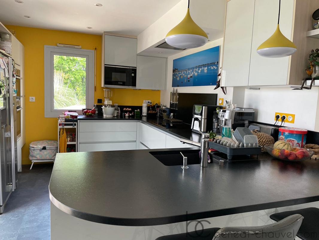 Entrée de la Presqu’île de Rhuys, au calme d’une impasse, grande maison moderne . RDC : entrée, wc et lave-mains, séjour avec cheminée, superbe cuisine ouverte aménagée équipée, salon, chambre avec salle d’eau-wc, une autre chambre avec salle de bains et dressing. Au 1er étage : dégagement, 4 chambres, salle de bains et douche, wc.