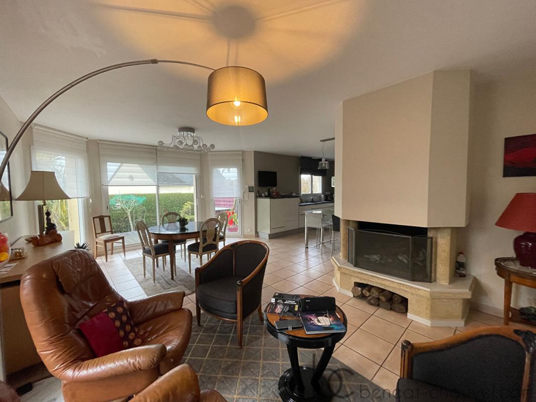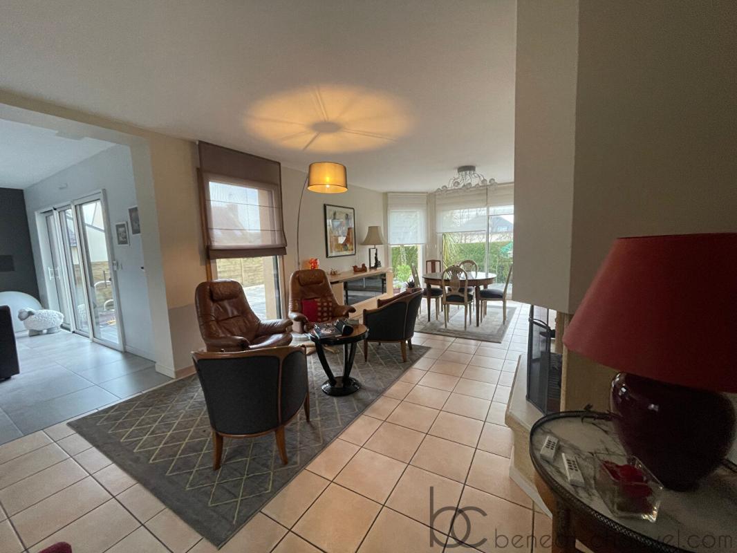 Idéalement située à la limite immédiate de Vannes Ouest, cette maison construite en 2000 représente l’opportunité parfaite pour une famille en quête de calme et de proximité urbaine. La demeure se distingue par ses volumes généreux et une luminosité remarquable, notamment grâce à une exposition sud-ouest optimale qui baigne de lumière les pièces de vie tout au long de la journée. Dès l’entrée, vous découvrirez un vaste séjour-salon agrémenté d’une cheminée chaleureuse, prolongé par un salon vidéo dédié à la détente. La grande cuisine équipée, ouverte sur l’espace de vie, ainsi que le cellier attenant, soulignent le caractère fonctionnel et convivial de cette propriété soignée.