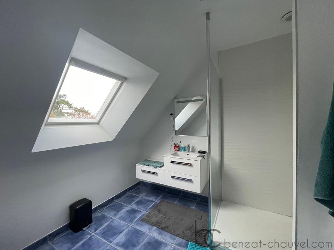 Le rez-de-chaussée est conçu pour offrir une véritable vie de plain-pied avec la présence d’une chambre confortable et d’une salle d’eau privative. La maison dispose d’un garage spacieux surmonté d’un grand grenier offrant un potentiel de stockage ou d’aménagement supplémentaire. A l’étage, un grand palier dessert trois belles chambres lumineuses, toutes dotées de parquets et de placards intégrés pour un rangement optimal. Une seconde salle d’eau et des toilettes indépendants complètent ce niveau dédié au repos, garantissant ainsi l’intimité et le confort de chaque membre de la famille.
