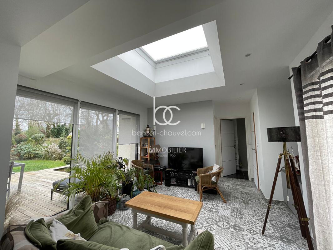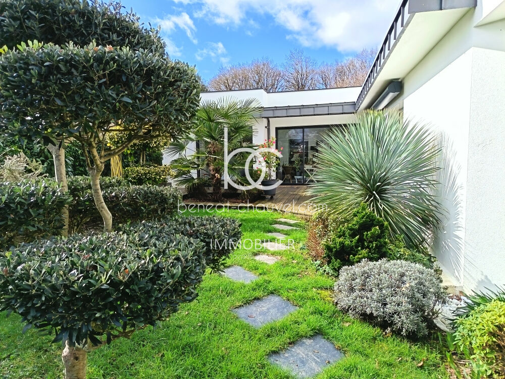 PLOEREN Plein centre, au calme d’une impasse dans un environnement verdoyant, superbe maison en excellent état, entièrement de PLAIN PIED, sur un terrain clos et arboré; elle possède une grande entrée offrant la possibilité d’un bureau ou couchage, vaste séjour-salon traversant très lumineux, avec son poêle à bois (de 2024), belle cuisine récente, 3 chambres, salle de bains balnéo (2020), salle d’eau, 2 wc dont 1 avec lave-mains