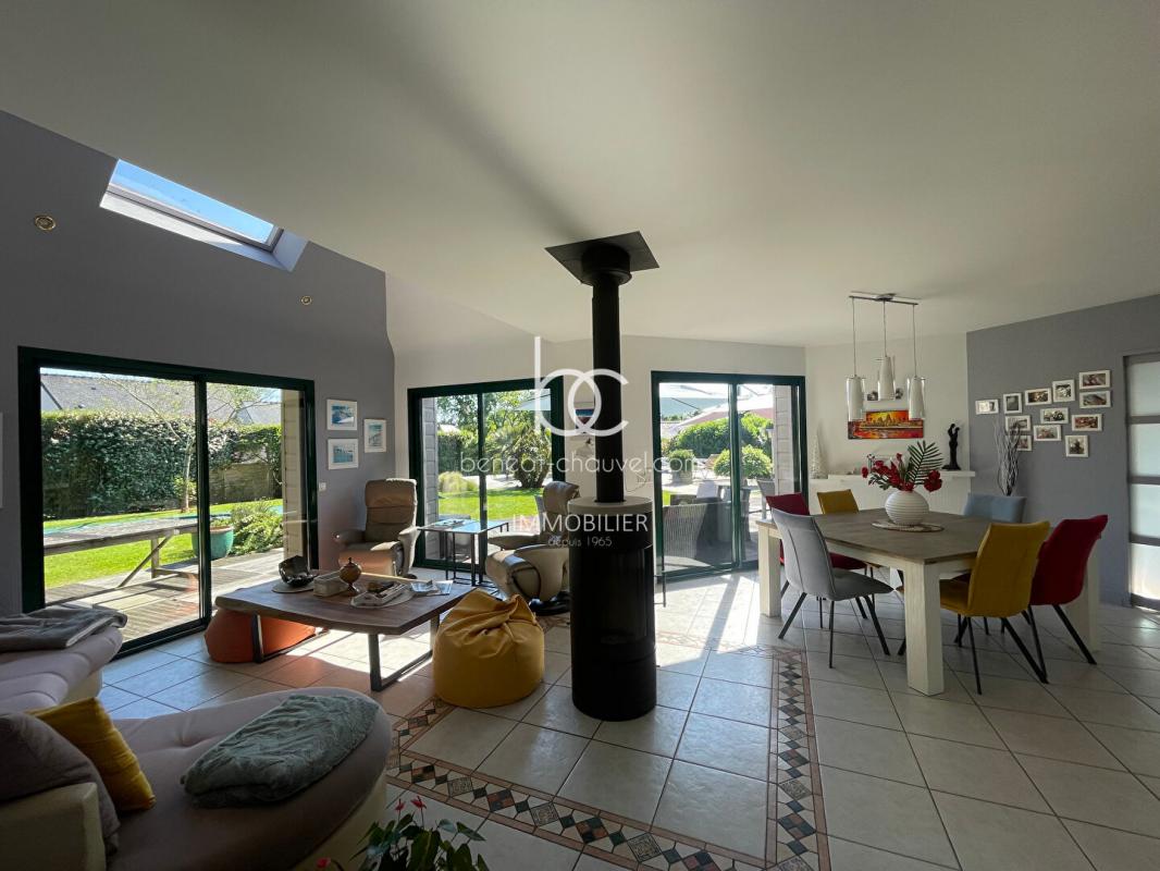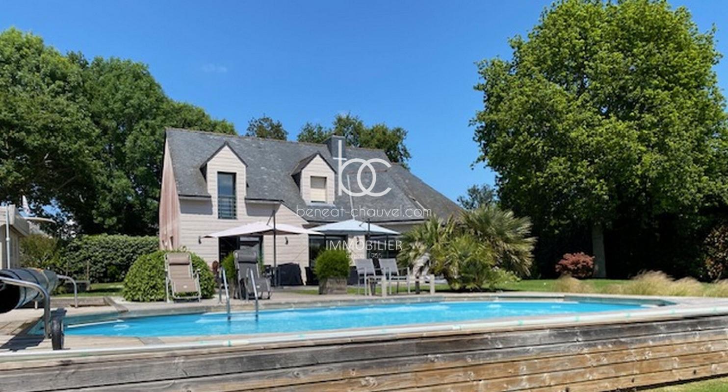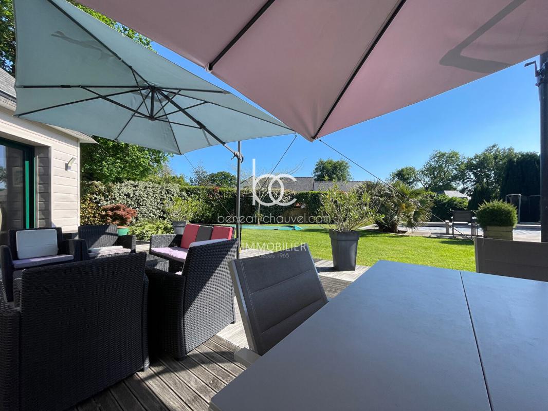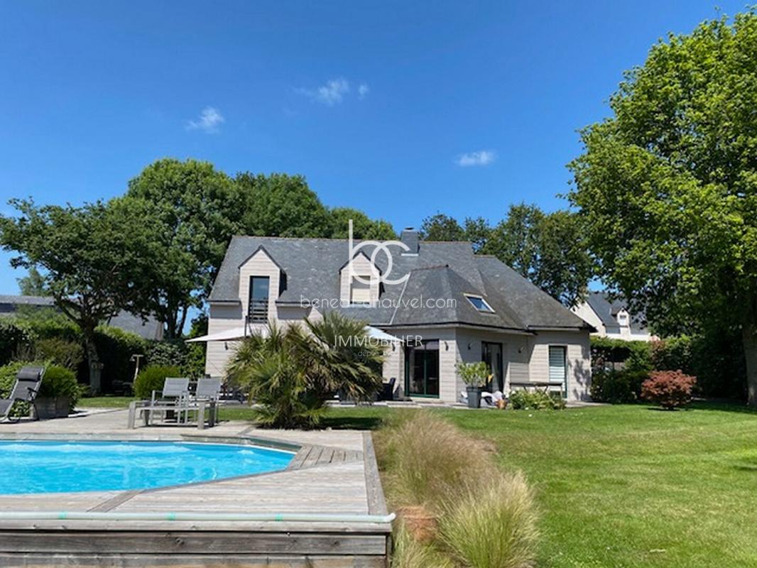 Plougoumelen, 10 minutes de Vannes dans un très bel environnement à proximité du bourg, belle contemporaine située sur un magnifique terrain de plus de 2000 m² avec piscine chauffée, Pool House et abri de jardin. Elle vous offre un beau séjour-salon avec poêle à bois donnant sur une très belle terrasse, cuisine équipée, cellier buanderie, une chambre, dressing, salle d’eau, wc.