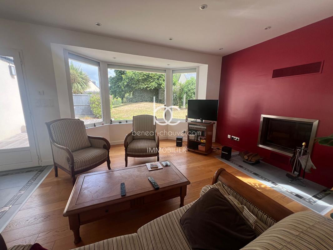 Un vaste séjour-salon de 45 m² baigné de lumière, avec cheminée, ouvert sur une terrasse et un jardin intime, sans aucun vis-à-vis.