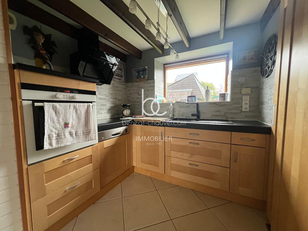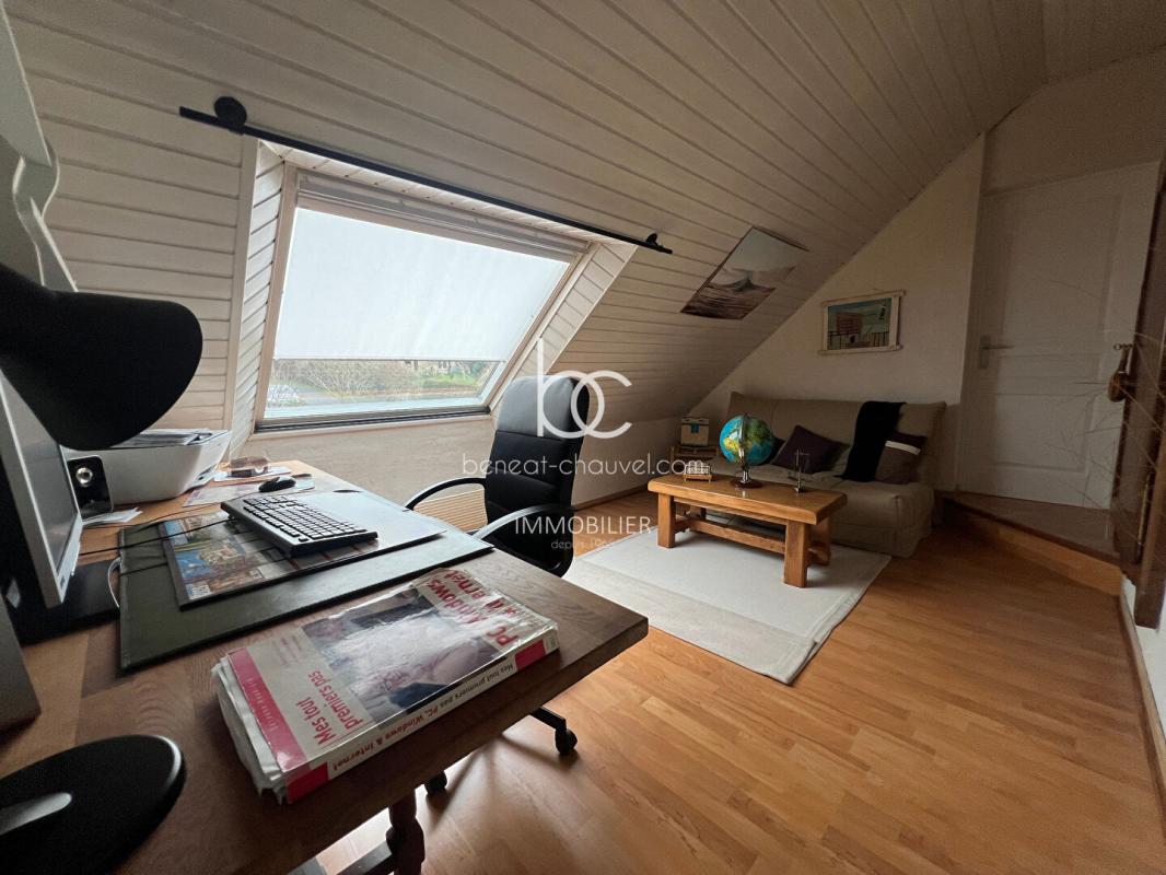 Au rez-de-chaussée, vous découvrirez une spacieuse pièce de vie de 44 m², particulièrement lumineuse, avec cheminée et ouverture sur une terrasse abritée, idéale pour profiter des beaux jours. La maison dispose également d’une cuisine aménagée et équipée, d’une salle d’eau, de WC indépendants, d’un cellier, ainsi que d’un garage de 33 m². Possibilité de créer une chambre au rdc.