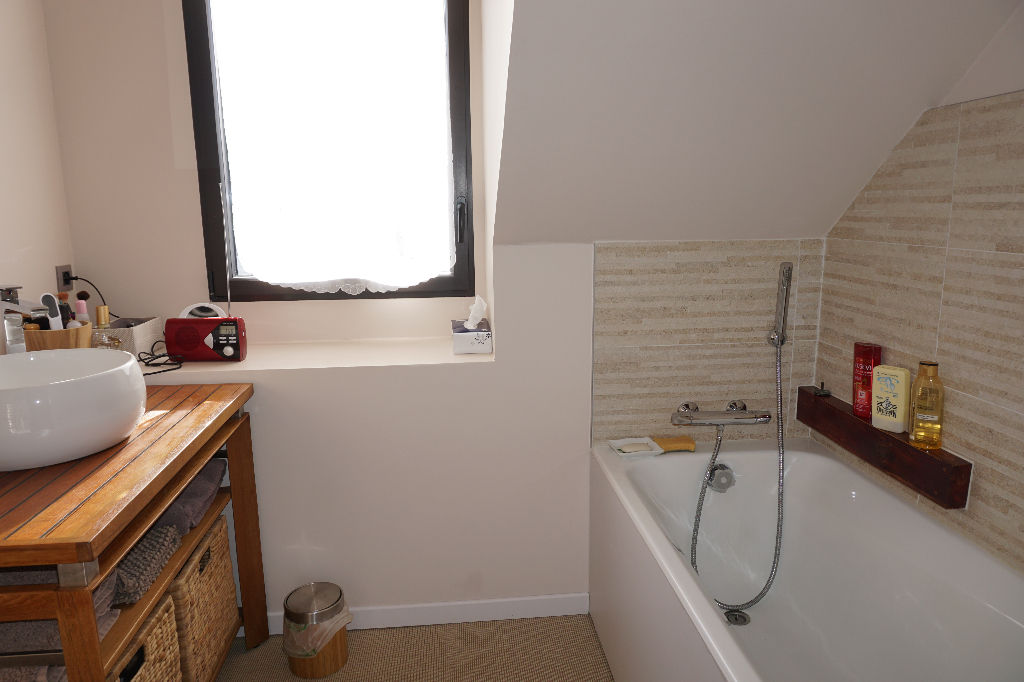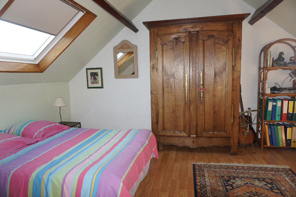 A l’étage : deux belles chambres, salle d’eau, wc.