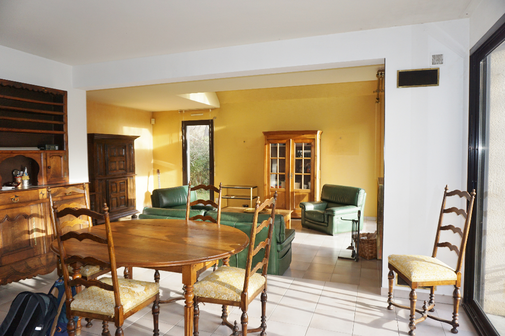 un hall, séjour-salon (avec cheminée) 42 m² , cuisine équipée, arrière-cuisine, une chambre, salle d’eau, wc. Vestiaire.