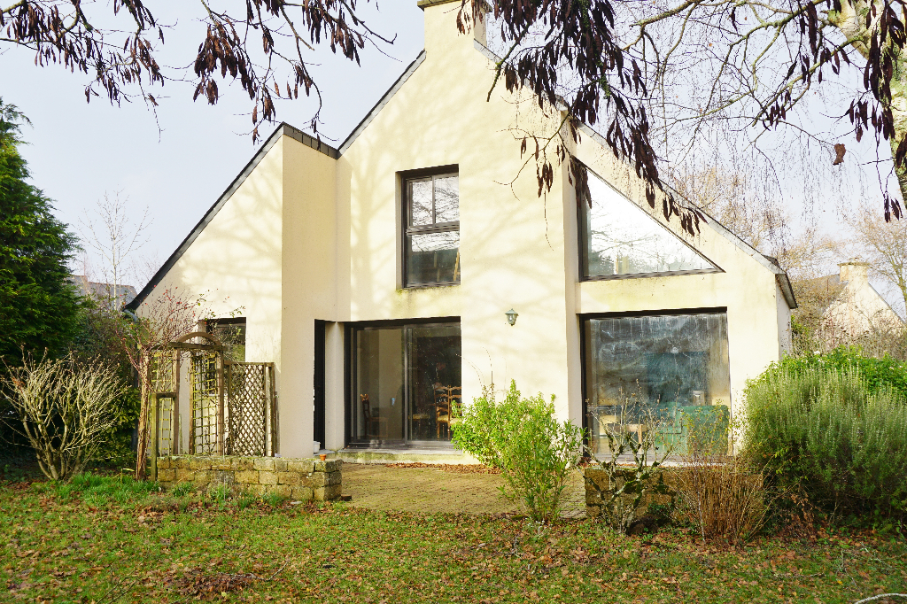 Vannes "Conleau" idéalement située au pied des sentiers côtiers, sur un magnifique terrain paysagé, cette maison d’architecte vous offre au rdc :