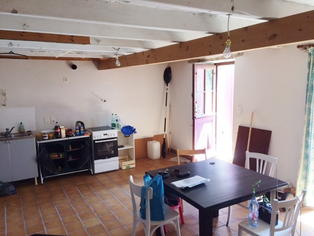 Au rez-de-chaussée : une pièce à vivre avec cuisine.