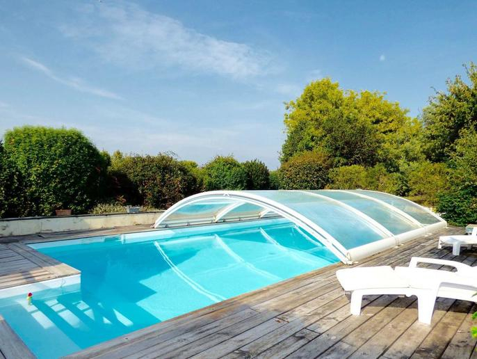 Etage : 4 chambres, salle d’eau, wc. Un terrain clos et paysagé de 1445 m² avec ses terrasses, sa piscine et son jacuzzi.