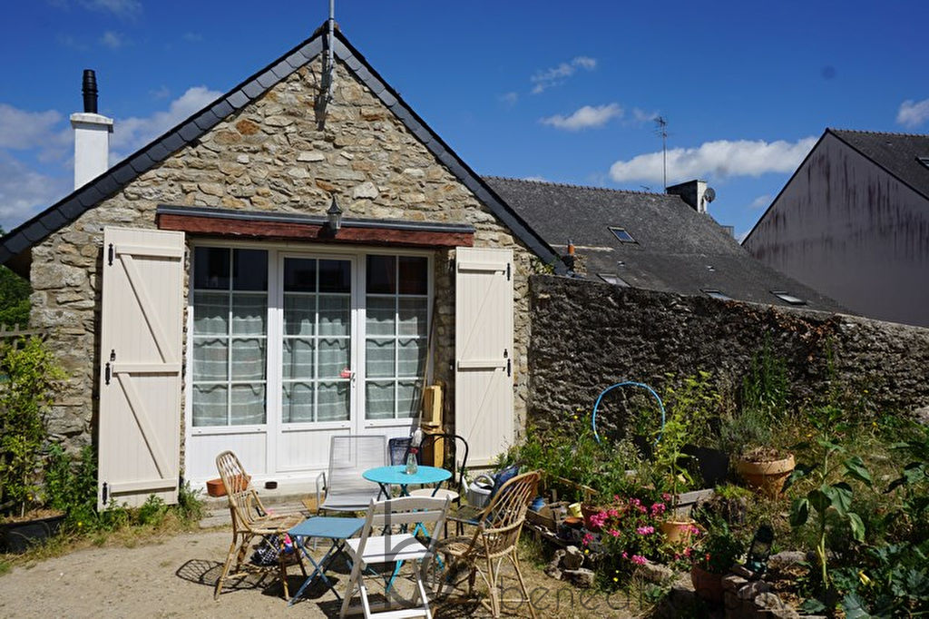 Saint Avé au coeur du bourg, petite maison de pierre comprenant : Séjour salon avec coin cuisine, une chambre, salle d’eau, wc. Mezzanine (couchage, bureau). Terrain de 149 m²