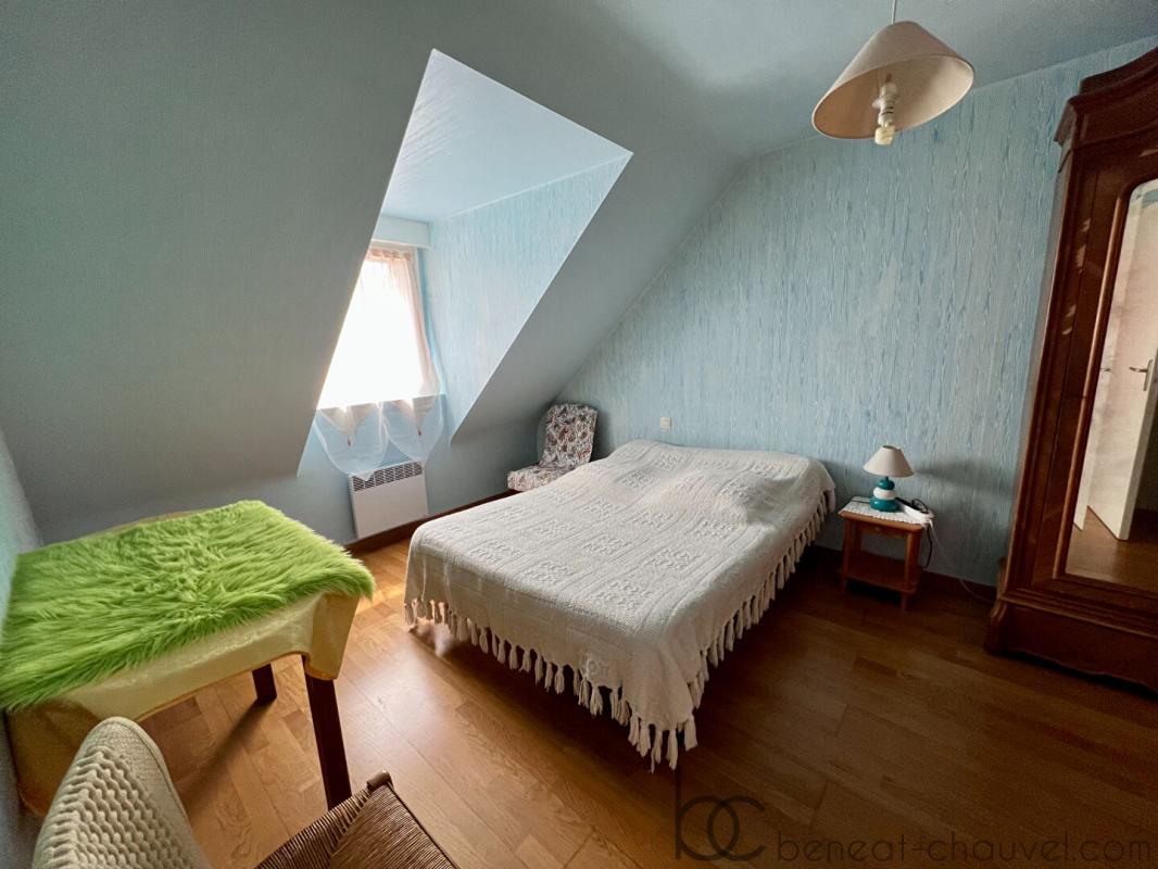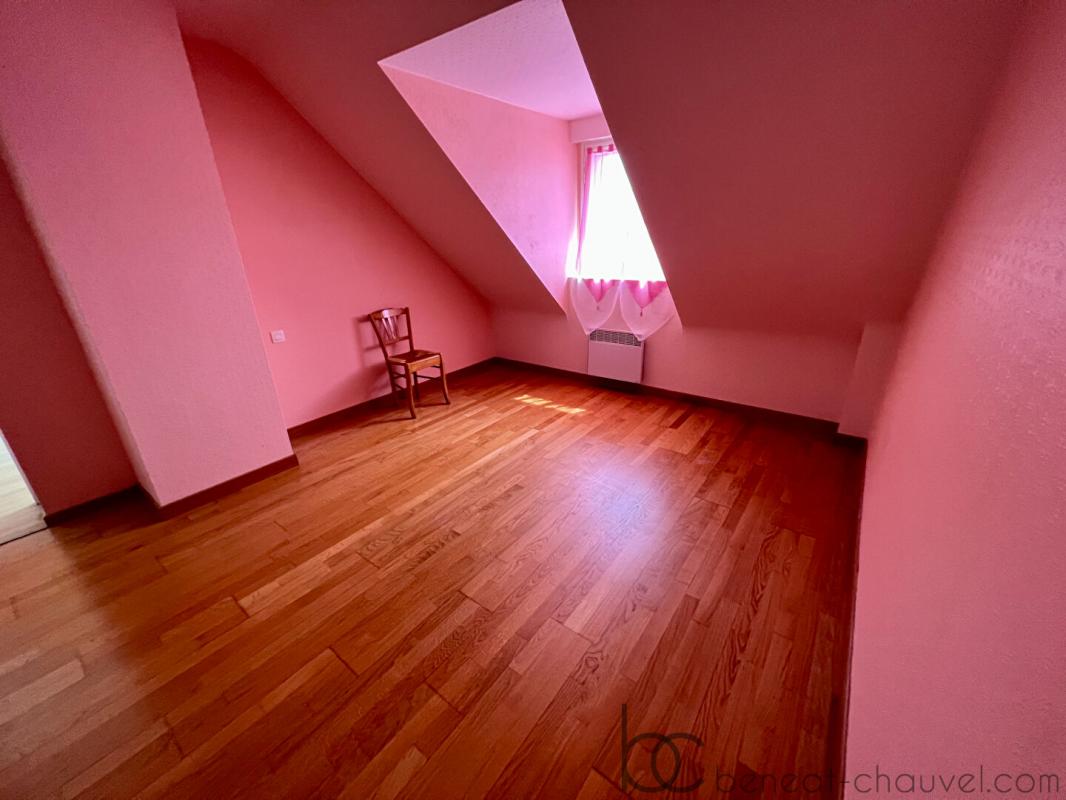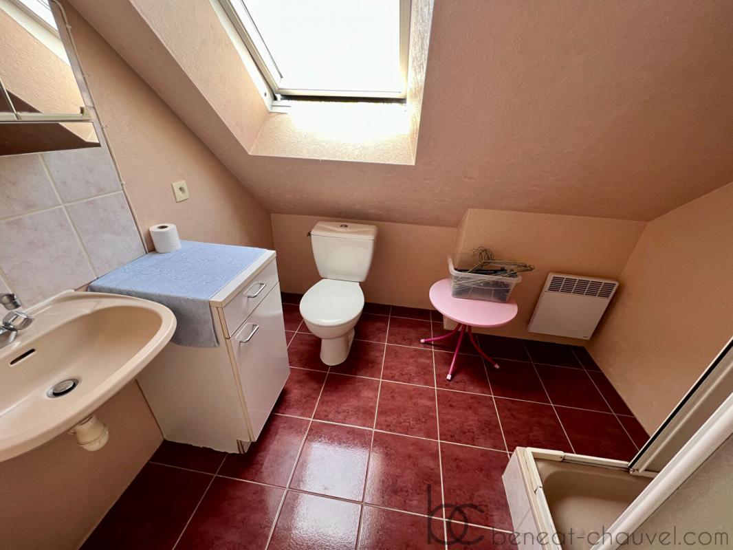 A l’étage: palier, trois chambres dont deux communicantes, une salle d’eau avec wc.