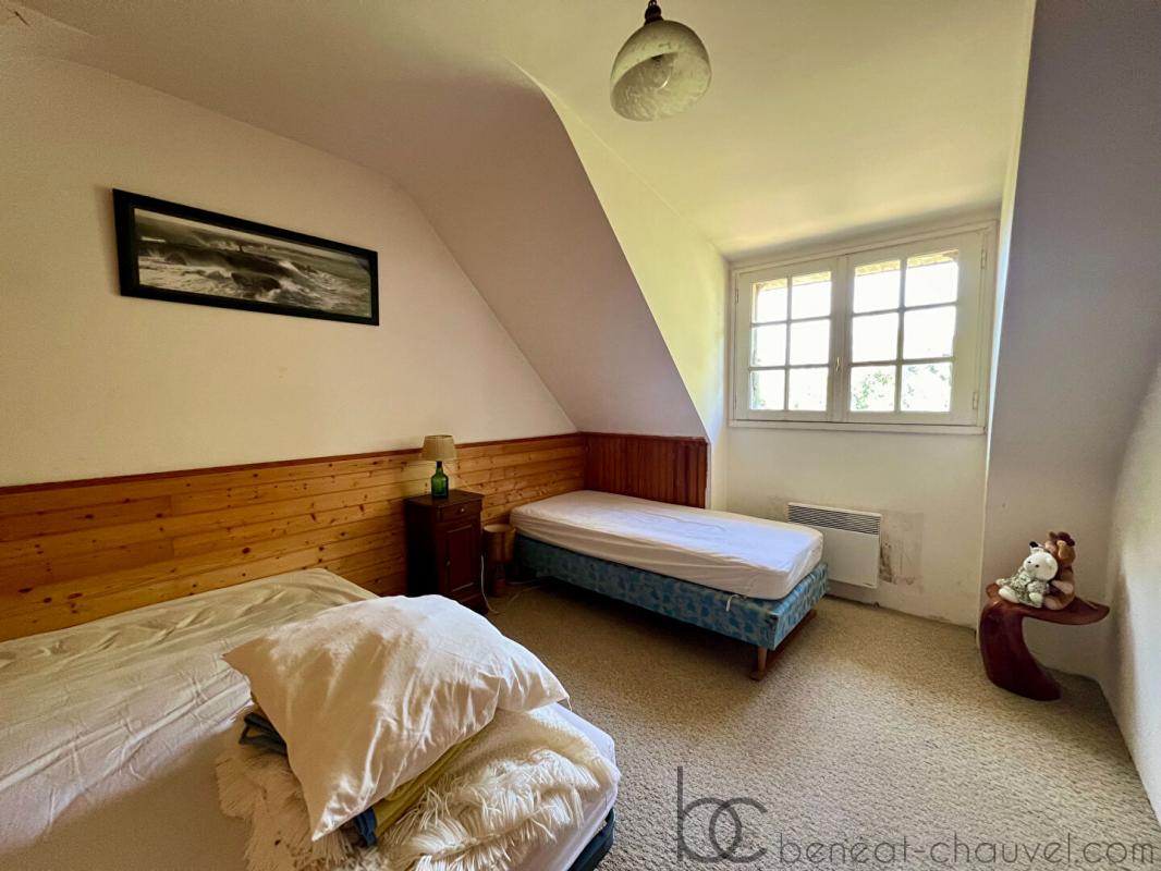 EXCLUSIVITE BENEAT CHAUVEL, PORT NAVALO venez découvrir cette maison entourée d’un cadre verdoyant de 980m2 environ, avec possibilité d’agrandir, située entre le bourg et la plage de Port Navalo. Elle comprends au rez-de-chaussée: un séjour/salon, une cuisine indépendante, une chambre, une salle de bains et un wc, garage et grenier attenant.