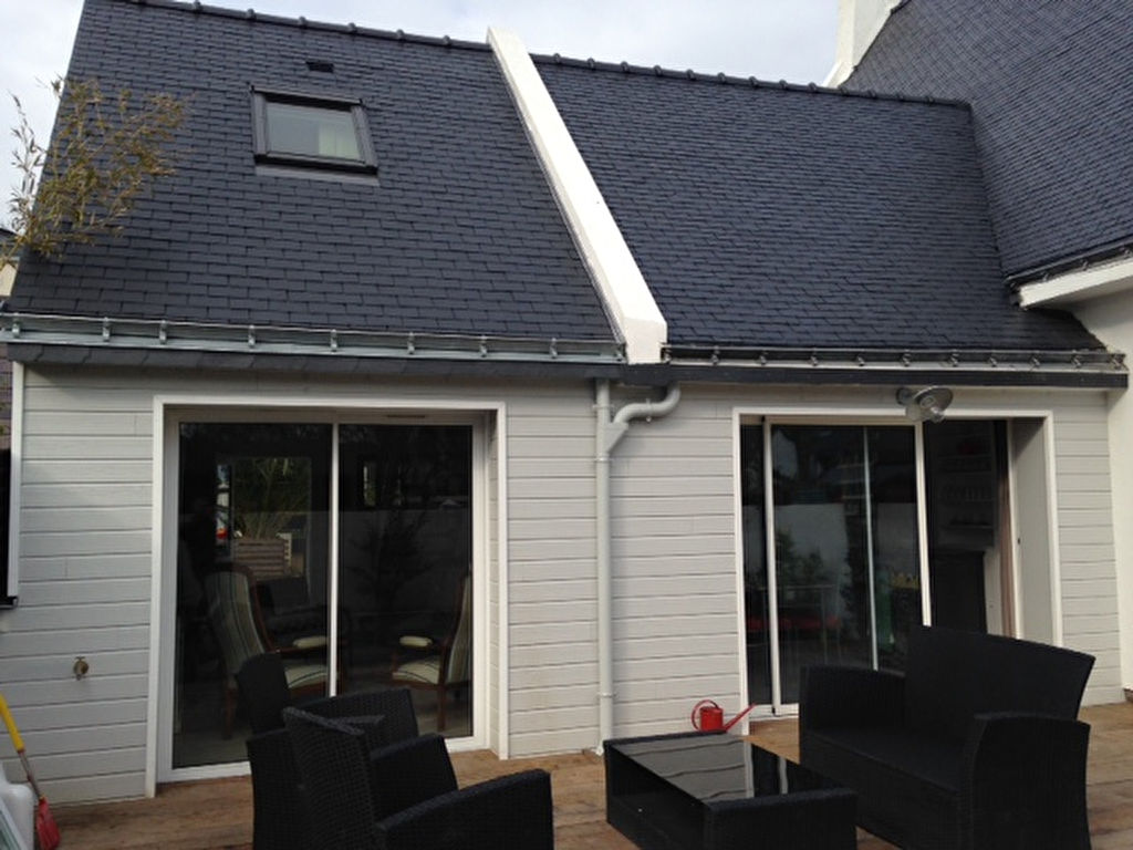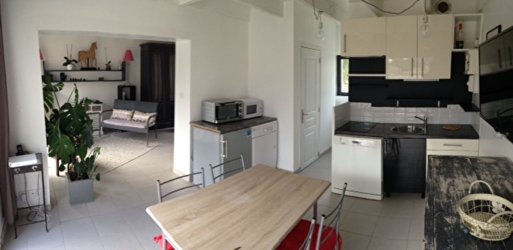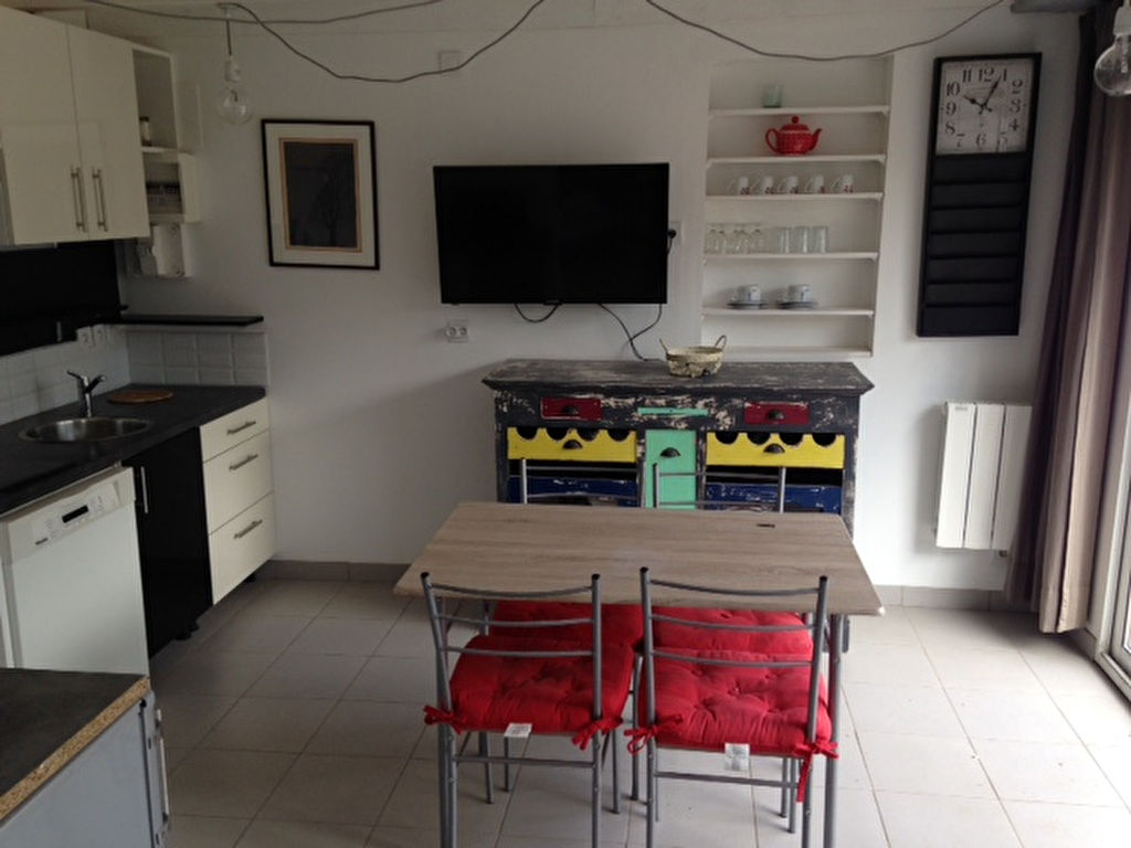 Dans secteur recherché, belle maison de vacances à proximité du golfe en excellent état et comprenant : entrée, séjour-salon avec coin cuisine équipé, salle d’eau, wc. A l’étage : 2 chambres. Belle terrasse avec jardin sud.