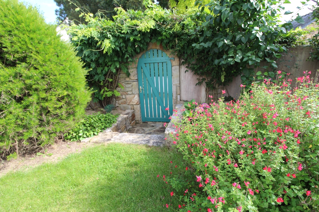 Garage avec grenier au dessus. Appentis et bûcher. Jardin clos et arboré d’environ 540 m².