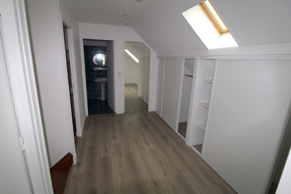 A l’étage : palier, trois chambres, salle de bains, W.C