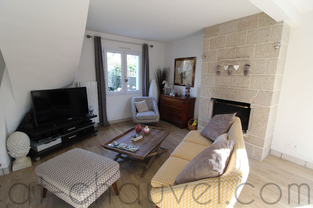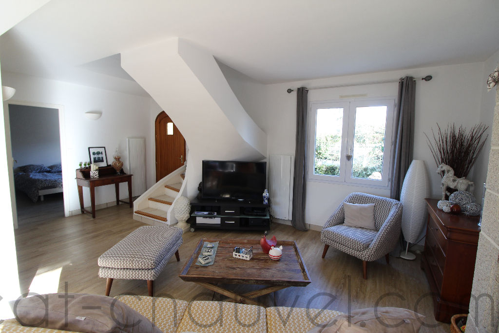Rare sur le Golfe, en impasse au calme et proximité immédiate plage par chemin côtier, charmante maison sur terrain clos et arboré de 500 m² environ comprenant séjour salon avec cheminée, cuisine indépendante et arrière cuisine, 3 chambres dont 1 au RDC, mezzanine bureau, salle d’eau, sdb et 2 wc.