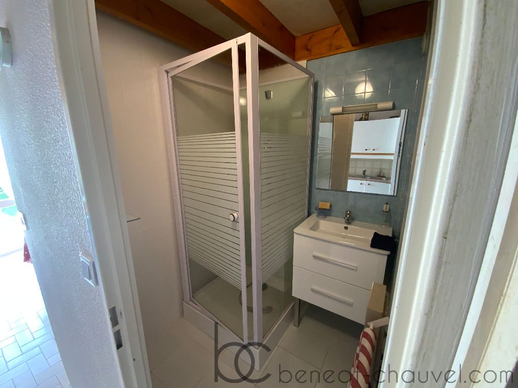 Agréable maison de vacances à deux pas de la plage, comprenant une buanderie rangement, entrée avec placard, wc, salle d’eau, pièce de vie donnant sur une terrasse orientée plein Sud, A l’étage deux chambres, Appentis de jardin et jardinet privatif, local commun à vélo et une place de parking privative.