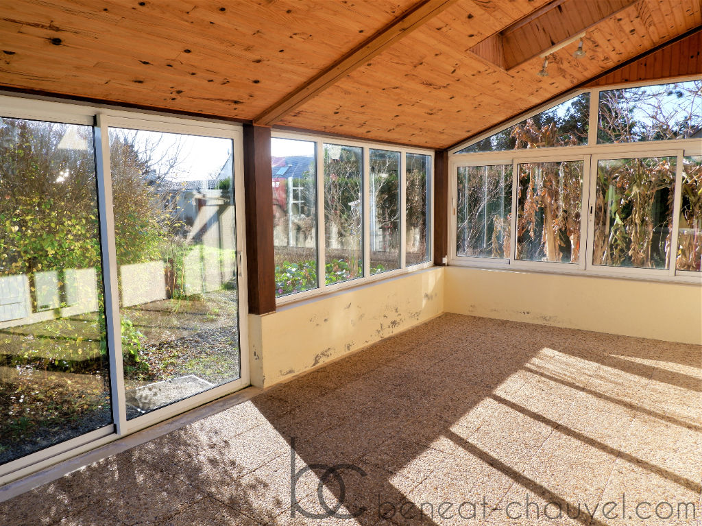 SARZEAU, Proximité immédiate bourg, maison des années 85. Comprenant au rez-de-chaussée: entrée avec placards, séjour/salon avec cheminée, véranda, cuisine équipée et aménagée, WC, salle d’eau, une chambre.