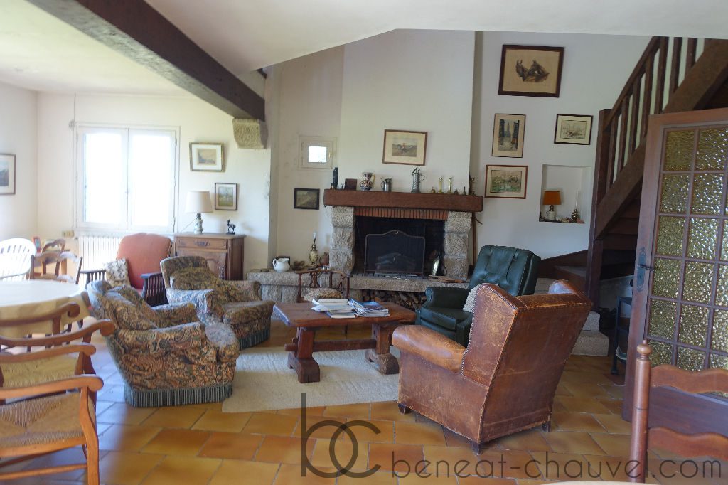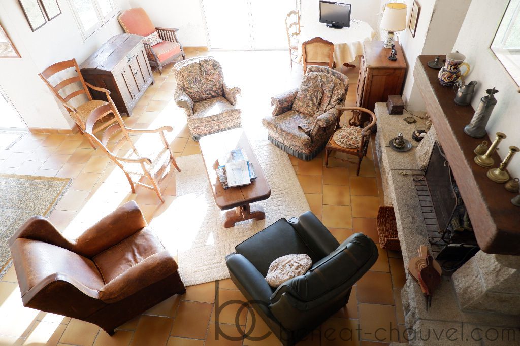 – au rez-de-chaussée, hall d’entrée, dégagement, WC , cellier, une salle de bain, deux chambres, un espace atelier, un garage, un grand séjour- salon avec cheminée et une cuisine indépendante.