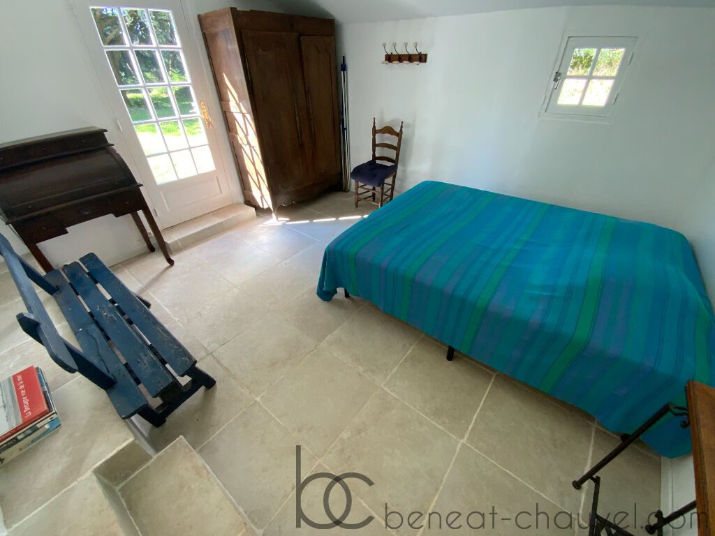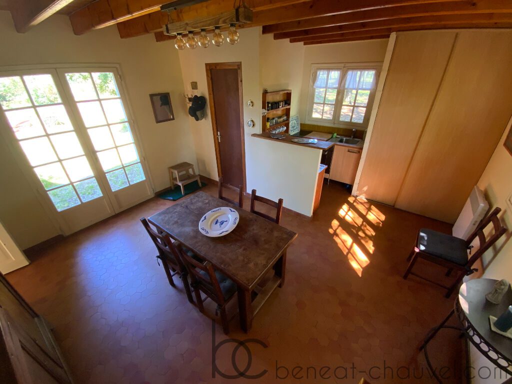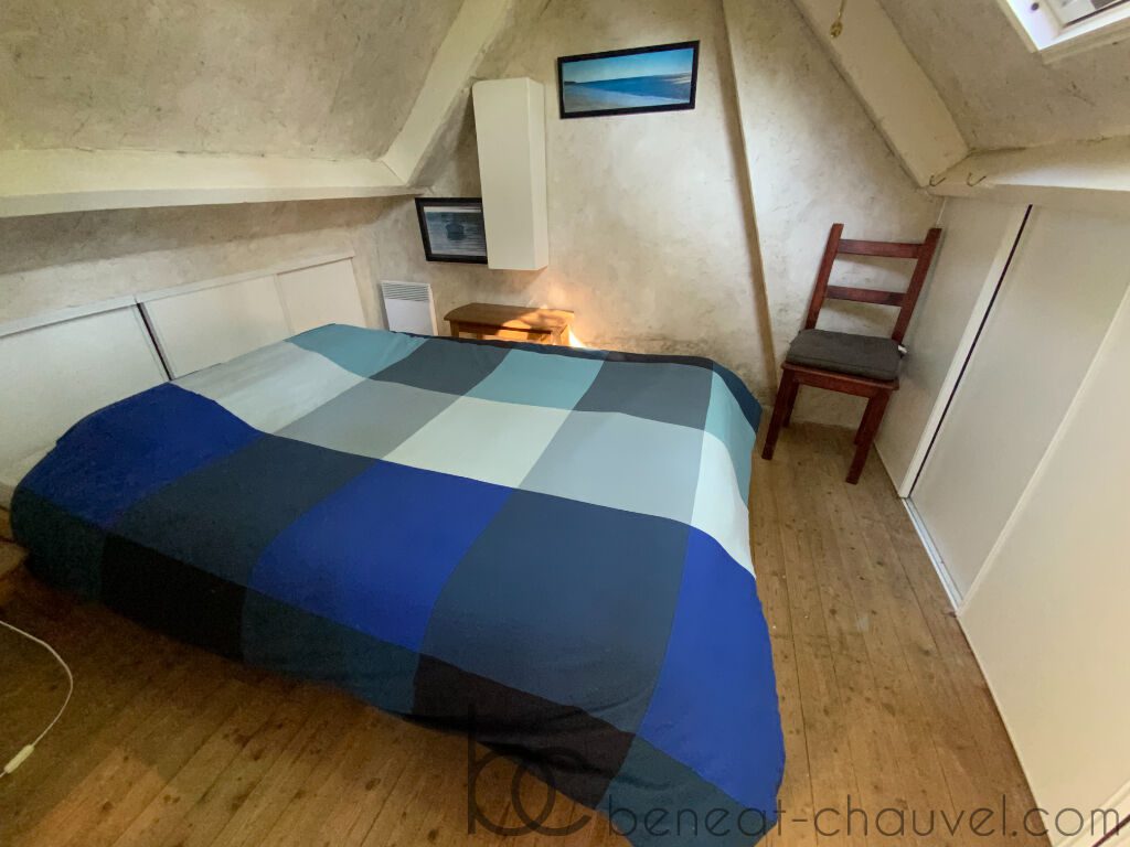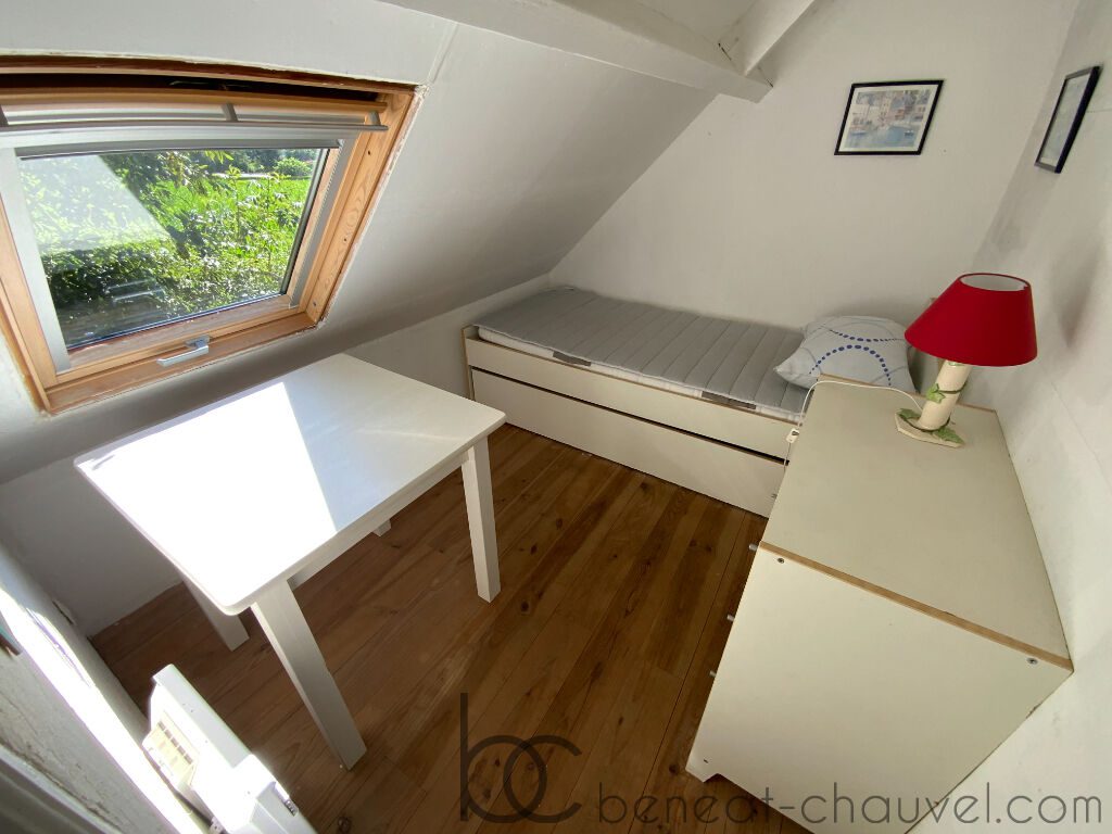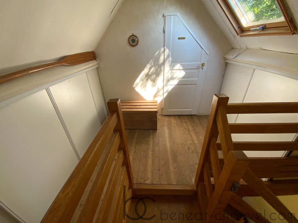 à l’étage, dégagement avec placards, 3 petites chambres, le tout sur un terrain arboré de plus de 3500 m² , cabanon de rangement en bas du jardin. Possibilité d’extension.