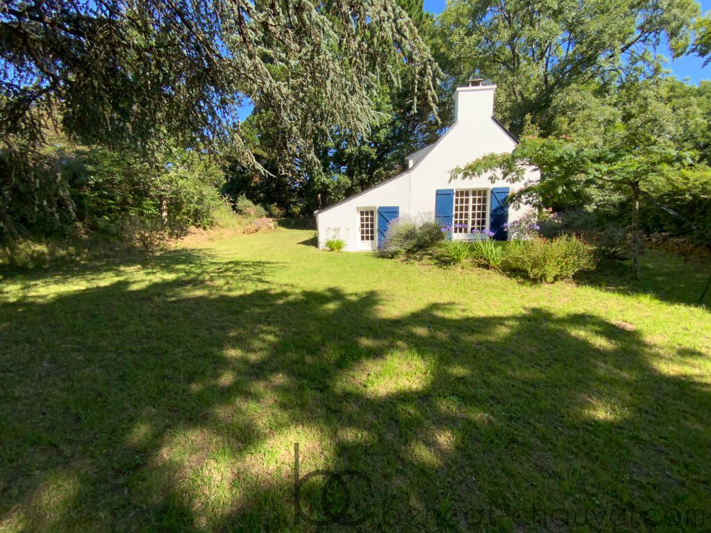A 2 km du port du Logeo et à 800 mètres du Golfe du Morbihan, dans un écrin de verdure, maison d’habitation comprenant entrée sur pièce de vie avec espace kitchenette, salle d’eau avec WC, en contre bas salon avec cheminée, une chambre,