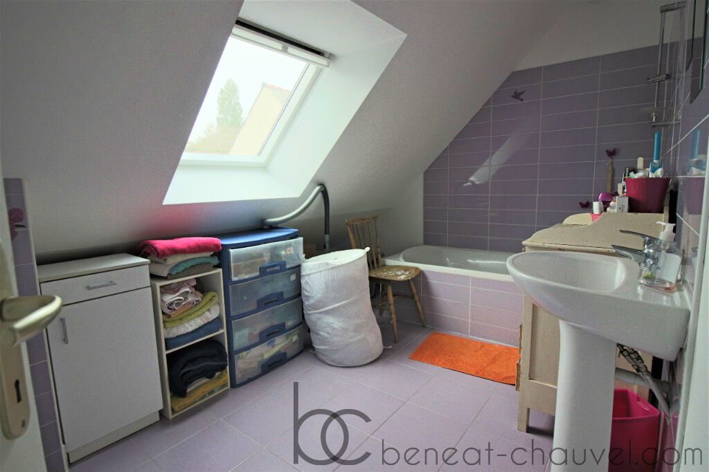 Maison à l’entrée du bourg, elle se compose d’une entrée, cuisine, séjour salle à manger, chambre avec salle d’eau, wc, garage. Étage : Quatre chambres ,salle de bains avec wc, l’ensemble sur un terrain de 870 m². A découvrir rapidement…