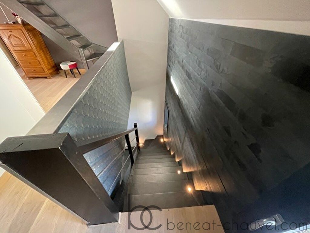 – Au rez-de-chaussée: séjour/salon avec cheminée, cuisine équipée et aménagée, cellier, wc,